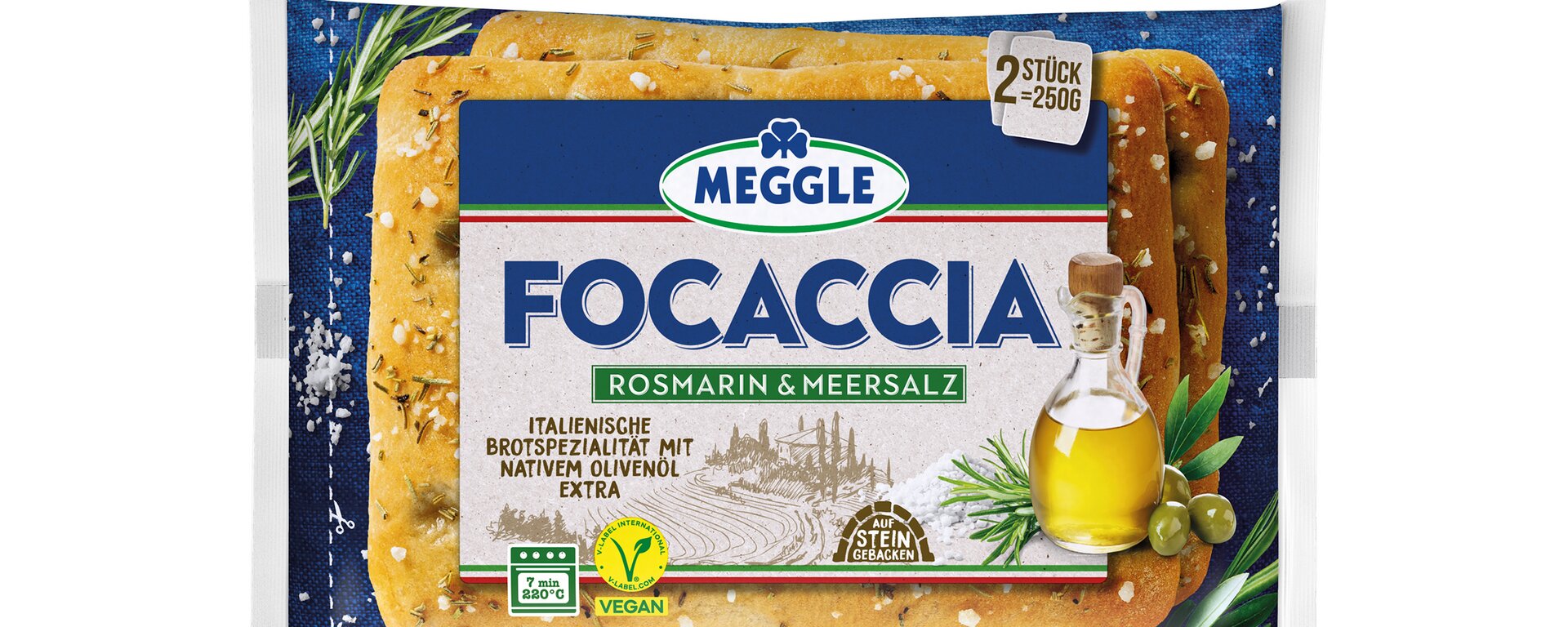Wasserburg am Inn, den 17.01.2024 – Ab KW 11 ergänzt MEGGLE sein Sortiment für die Grillsaison um eine italienische Brotspezialität: MEGGLE Focaccia Rosmarin & Meersalz zum Aufbacken. Das Neuprodukt ist vegan zertifiziert und sorgt mit seiner stehenden Platzierung im Kühlregal für hohe Awareness und frische Kaufimpulse bei einer breiten Käuferschicht. Die auf Stein gebackene Focaccia ist mit 2 Stück à 125 g in einer Verpackung perfekt zum Teilen und convenient zugleich. Eine reichweitenstarke Mediakampagne und eine attraktive Promotion sorgen für entsprechende Aufmerksamkeit.