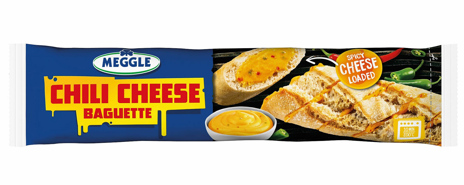 Das Chili Cheese Baguette von MEGGLE ist ein absoluter Trendsetter: Es vereint das beliebte knusprige Baguette mit der fluffig-lockeren Krume und eine einzigartige, neue Füllung. Die fein abgestimmte Chili Cheese Füllung enthält würzigen Cheddar und pikante Chilis und kombiniert angenehme Schärfe mit zartschmelzendem Käse. Die feurig-trendige Geschmackskombination ist nicht nur etwas für erfahrene Grillmeister, sondern für alle, die auf der Suche nach neuen Geschmackserlebnissen und Abwechslung sind. Das Chili Cheese Baguette von MEGGLE ist somit nicht nur am modernen Grillbuffet ein „Must have“, es eignet sich auch unkompliziert als feurig-schneller Snack: In nur 9-11 Minuten im Backofen ist es fertig gebacken.