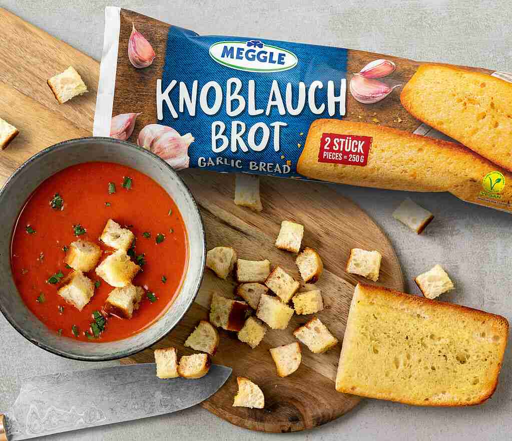 Das MEGGLE Knoblauch Brot eignet sich perfekt als Beilage zu Fleisch, Fisch und Salat, zu Gegrilltem aller Art oder als herzhafte Basis für leckere selbst belegte Snacks. Und natürlich ist es auch pur ein Genuss!