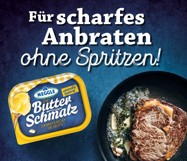 „Ghee“ steht hierbei für Butterreinfett oder eben Butterschmalz. Somit können Liebhaber der indischen Küche auch beherzt zum MEGGLE Butterschmalz greifen!